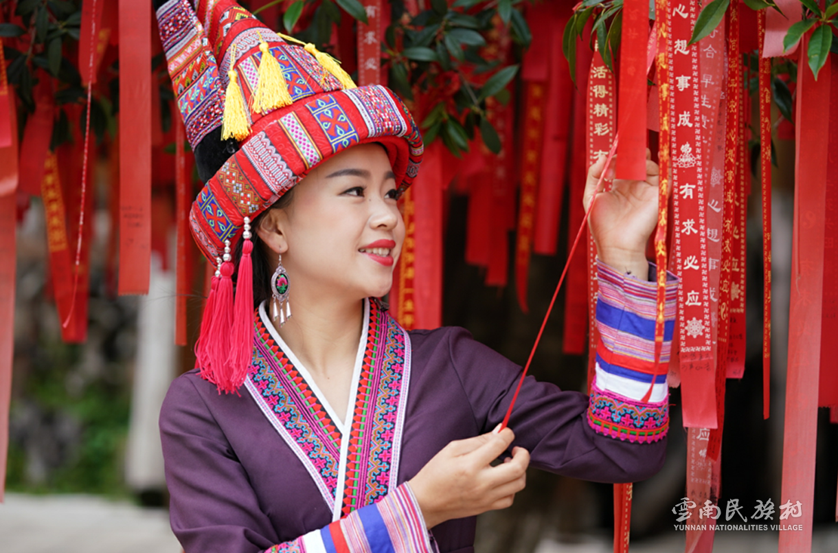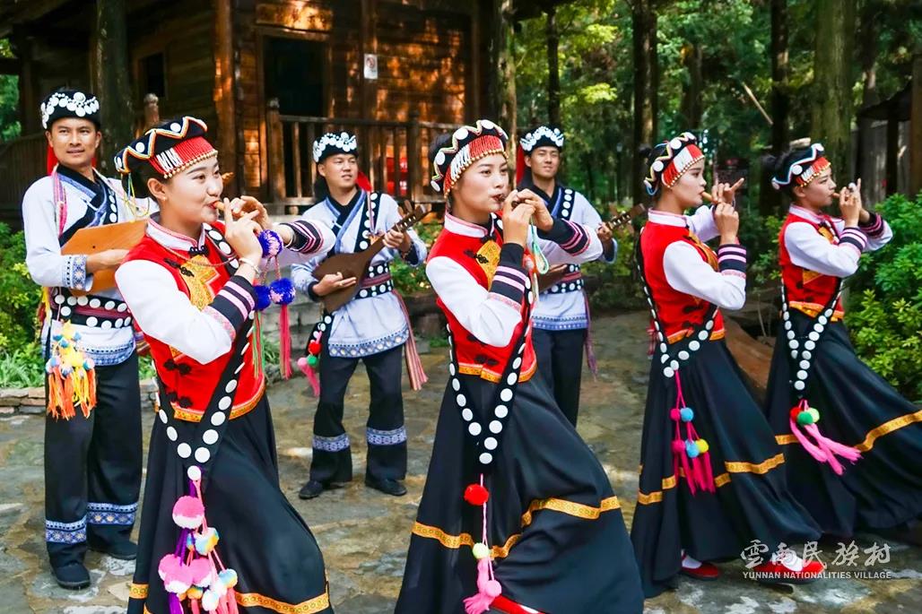 彝族在云南境內(nèi)約471萬人,是省內(nèi)人口最多、分布最廣的少數(shù)民族,主要聚居在金沙江、元江流域和哀牢山、無量山腹地。彝族是一個能歌善舞的民族,民間打歌、跳樂之風(fēng)盛行,大三弦、跌腳舞久負(fù)盛名?;鸢压?jié)是彝族最具特色的民族節(jié)日。彝族村占地50余畝,三虎浮雕墻與虎頭內(nèi)祖師形象表現(xiàn)了彝族虎鷹文化。太陽歷廣場圖騰柱上有太陽、虎、火和八卦圖形象,周圍環(huán)繞著10個朝向不同的月球造型,外圓周有12生肖石雕。依山而建的“...